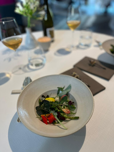 Read moreLe menu est unique, à l’aveugle et totalement flamboyant. A chaque fois plusieurs assiettes ou supports avec de petites choses combinées. Un festival de couleurs et de saveurs. Gaspacho au saveurs d’automne aux points d’huile de feuilles de figue !! Bar cru en jus fermenté et coques avec crème glacée de cosses de pois…. Yakitori de baby seiche au barbecue ! Les énoncés font valser votre imagination. Le rythme est soutenu.