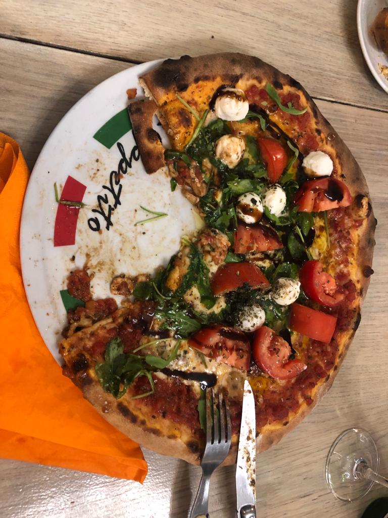 Nous avons commander des pizzas Pizza Sabri sur la carte il est donc indiqué Roquette Parme Mozzarella Tomates cerise