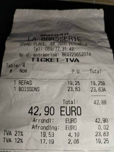 Read moreEn formation sur Peruwelz, nous avons choisi la brasserie pour prendre notre repas : copieux, bien présenté et très bon, un service tout en sourire et donc très agréable. Mon mari a passé l'après midi, lors de cette formation, avec toujours ces sourires et cette formidable sympathie. Alors merci pour votre accueil si chaleureux et nul doute que nous reviendrons nous assoir à...