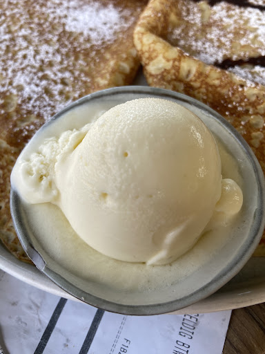 Read moreNous avons fait 25 minutes de route pour une belle dĂ©ception. Sur place il faut comprendre par nous mĂȘme comment cela fonctionne: plusieurs endroits extĂ©rieurs pour se poser, un bĂątiment principal oĂč il y a les prĂ©parations, un service au comptoir et un endroit pour se poser. Il y avait Ă©normĂ©ment de monde. Nous sommes allĂ©s nous installer sous le chapiteau. Mon mari part passer commande au comptoir (pas de service Ă table) et de lĂ il reçoit un beeper. AprĂšs 15 minutes il sonne mais ce ne sera que pour mon latte macchiato. 15 minutes plus tard la table de 8 derriĂšre nous recevra sa nourriture alors quâelle est arrivĂ©e et a passĂ© commande bien aprĂšs nous⊠Mon mari part voir si on ne nous a pas oubliĂ© ou autre⊠Apparement si: nos glaces avaient commencĂ© Ă fondre (voir photos). Le chocolat de ma crĂȘpe mikado Ă©tait froid et la crĂȘpe en elle mĂȘme nâĂ©tait pas terrible (Ă©paisse et sans goĂ»t). Les glaces Ă©taient bonnes et mon mari a apprĂ©ciĂ© son cafĂ© gourmand (lui il a eu la chance dâavoir son cafĂ© avec sa nourriture). Beaucoup dâattendre et de route pour peu de plaisir et de dĂ©tente. On est tellement blasĂ©, quâĂ peine avoir fini de manger on...