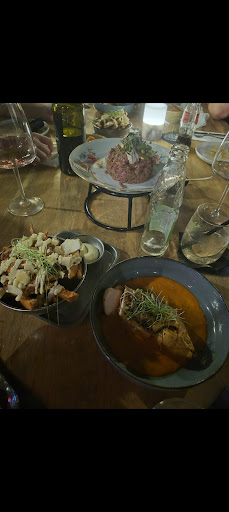 Read morePluspunt voor het feit dat we spontaan een tafel kregen. Het zat de hele tijd dat we er waren vol, wat echt een goed teken is. De inrichting en sfeer zijn uitnodigend en gezellig, we voelden ons echt op ons gemak, er hangt een familiaire sfeer en je voelt je welkom. Een man kwam na ons binnen en door de regen was zijn jas kletsnat, die werd hem niet afgenomen en er leek geen kapstok te zijn om hem aan op te hangen. Een punt waar aan gewerkt kan worden. Vervolgens bestelde ik een Aperol spritz als aperitief. Er zat echter geen spritz in en ik vroeg toen of er cava of bruiswater bij kon. Volgens de serveerster zat er wel cava in maar ik merkte er helemaal niets van. Ze nam het mee en bracht een tweede, precies dezelfde, zonder spritz, zelfs mijn man had het door en zei dat het misschien de cava was die niet bruiste, wat ik vreemd vond. Het menu is duidelijk en gevarieerd, wat een goed teken is omdat het de versheid van de producten garandeert. We kozen elk een hoofdgerecht. Normaal gesproken krijg je wat brood of een voorgerecht om de wachttijd door te komen, maar dat was hier helaas niet het geval. Toen het eten kwam, waren we allebei overweldigd door de smaak, het overtrof eigenlijk al mijn verwachtingen! Ik koos voor stovernij van varkenswang en mijn man voor zeebaars. Over het eten kun je dus echt niets zeggen! Het was een droom! We sloten af met degistief en koffie. Voordat we weggingen, bezocht ik het toilet. Het is een gemengd toilet. Je merkt echter dat het een beetje vergeten is. Het was echt vettig, de mannen plasten staand en je zag overal sporen van urine op de wc-bril en eronder... Het was gewoon smerig, Als ze er aandacht aan zouden besteden om het tussendoor schoon te vegen, zou er bijna niets te klagen zijn. We gaan zeker terug komen want het eten was...