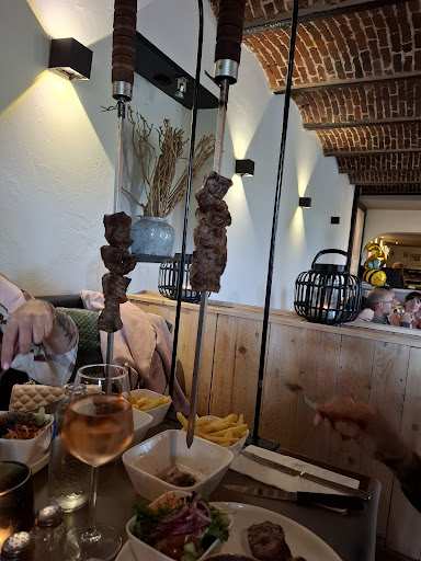 Prima plek voor gezinnen met kleine kinderen. Er is een kindermenu met vijf items. Geen vegetarisch op het kindermenu. Ook niet op het volwassene menu. Op dit menu staan vooral vleesgerechten, veelal klassiekers en brochette die trouwens spectaculair geserveerd wordt aan tafel door middel van een verticale houder voor de spies! Er zijn geen alcoholvrije cocktails. De desserten zijn ook de klassiekers zoals moelleux, dame blanche enz Het restaurant heeft ook een grote binnenspeelkamer met ballenbad en buiten is er een omheinde speeltuin en groot terras met parking. Voor rolstoelgebruikers is er een oprit van de parking naar de ingang. De toiletten zijn gelijkvloers en zijn recentelijk vernieuwd en netjes. Het is ook mogelijk om in een aparte ruimte te eten. Deze ruimte biedt plaats Tot 12 man en is dichtbij de wc...