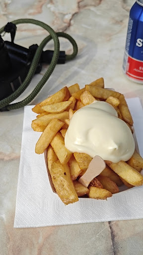 Read moreDe frietjes zijn best oke, maar naar mijn mening (als Belg) zijn het niet echt Belgische frietjes (schil is er nog aan, qua textuur ook niet helemaal zoals bij de frituur, zoete mayonaise, ik vroeg zout en volgens de verkoper zat dat er al op maar was zeer beperkt en een mengeling met andere kruiden 😅). Zeker geen slecht pakje friet, maar ook niet helemaal Belgisch, wel een Nice try 😉. Qua snacks bij de frieten hadden ze niet zo heel veel keuze (vb. geen veggie optie). Als je een snack zoekt als je daar in de buurt bent zeker oke, maar als je echt op zoek bent naar de Belgische ervaring kan je beter naar een frituur gaan ;) Personeel was heel...