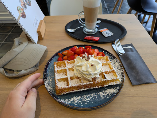 As you can see in the picture, I ordered the strawberry waffle with whipped cream and a latte. I can't recommend enough giving this spot a go if you are...