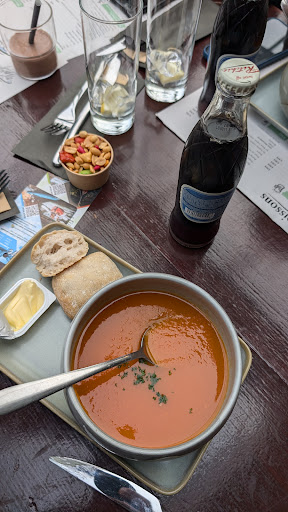 Read moreRien d'agréable dans ce resto. Nous venons avec un petit groupe de personnes âgées qui ont des difficultés à se mobiliser. On nous met à côté de la porte vitrée (ouverte). Finalement, de grosses pluies surviennent et la température commence vraiment à diminuer. Les personnes âgées ayant froid, je demande si possibilité de fermer la porte vu que personne ne la fermait, on me répond "oui" en étant très peu souriante et aimable. Le serveur vient prendre notre commande, règlement directement des apéritifs et des plats (on peut entendre que les gens partent sans payer.. mais en l'occurrence nous sommes avec un groupe de 5 personnes âgées qui ont du mal à se mobiliser, j'ai du mal à imaginer qu'on puisse partir sans payer en courant..). Au service, un plat a été oublié. En l'attendant, tout le monde commence à manger vu que c'est chaud, une fois que le plat arrive.. ma collègue était en train de manger qu'on lui demande de régler directement le plat qui avait été oublié.. je demande ensuite une bouteille d'eau qu'on nous fait evidemment payer directement.. bref, repas entrecoupés de payements, très loin d'être agréable. Puis une attente INTERMINABLE (+/- 1h) pour qu'on débarrasse nos assiettes. Au final je vois toutes les tables à côté de la nôtre qui ont les desserts, les cafés etc.. et j'ai comme l'impression que tous les serveurs nous évite (et ce malgré le fait que je lève la main plusieurs fois pour interpeller les serveurs). J'en viens donc à appeler avec une voix portante le serveur et demander moi-même si c'est possible d'avoir des cafés étant donné que personne ne semble nous proposer des desserts ou cafés.. et ils sont enfin venus débarrasser les assiettes. Bref, un service déplorable. Nous nous retrouvons avec 4 souches au final. Le rapport qualité-prix des aliments laisse à désirer.. fort cher pour ce que c'est. Bref, je ne recommande pas du...