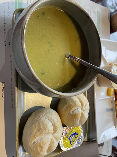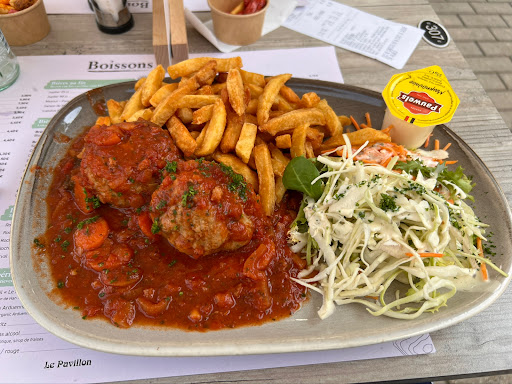 Read moreComme nous allions visiter les grottes puis le parc animalier, nous nous sommes renseignes sur les différents restaurants à proximité et le cadre idyllique du pavillon ainsi que sa carte locale nous on séduits. Nous avons réservés et nous avons bien fait, en sortant des grottes à 12h15 le restaurant affichait complet. Nous sommes installés dans un petit coin, les tables sont très proches les unes des autres, on participe à la conversation des voisins sans le vouloir. L’attente pour la commande est très très longue. On entend lors de la prise de commande de nos voisins qu’il n’y a plus de carbonnade ! Vient notre tour enfin, on commande. Après 15 mn d’attente la serveuse revient nous annoncer qu’il n’y a plus de vol au vent non plus… nous étions 2 sur 4 à en avoir commandé, nous voilà à chercher rapidement par quoi remplacer … Je passe sur l’énième temps d’attente … Pendant ce temps les serveuses hurle d’un bout à l’autre du restaurant, sympa l’ambiance bucolique … Le plat arrive enfin, à noter que si vous souhaitez une carafe d’eau, ils n’en ont pas ! Et c’est 7€ le litre d’eau … Le repas est sans saveur, les boulettes sont mollasses tout comme les frites (un comble en Belgique), la mayonnaise et le ketchup sont facturés 1€ chacun le petit pot. Après une attente encore une fois interminable je finis par aller chercher la serveuse pour régler et enfin pouvoir partir : 4 boissons gazeuses (locales certes !) et 4 plats : 95€50 ! Je cherche encore ce qui vaut ce tarif...