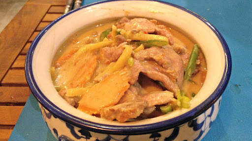 Read moreCeci n'est que mon point de vu mais j'ai été très déçu par le plat que j'avais commandé pour ma première fois. Plat qui est mon plat préféré au monde en plus mais je n'irai plus ici pour en trouver. Le goût était assez fade ( pour un plat qui se veut normalement épicé et relevé, c'est un comble ). Presque pas de saveurs ( pour avoir tester plusieurs restaurant thai, celui ci est mon expérience la plus décevante ). Une fois un thaïlandais m'avais expliqué que ils ne pouvaient pas cuisiner aussi épicé que chez eux pour la Belgique car quand c'est trop épicé les gens ici n'aiment pas mais quand même, j'aurais aimé quelques saveurs. La sauce très liquide presque de l'eau (photo attachée, ceux qui ont voyagés sauront que la sauce d'un curry coco ne doit jamais être aussi liquide et translucide..) alors que normalmeent cest une sauce plus onctueuse, tres petite portion pour un prix relativement cher. Pas de chips non plus ( ça, passe encore mais première fois pour moi qu on ne m'en donne pas en commande à emporter ). Pour ma part ce sera la première et dernière mais je conseil quand même aux gens qui ont mis de bonnes notes, de voyager et pourquoi pas en Thaïlande pour goûter des vrai saveurs de plats relevés, avec des goûts bien de chez eux. Cordialement P.s : le patron semble occidental et donc je comprends qu'il ait surement revisiter les plats pour les rendre plus accessibles aux palais de la région mais ce n'est en rien les vrais saveurs de thailande, de très loin ! attention attrape touriste! Vous...