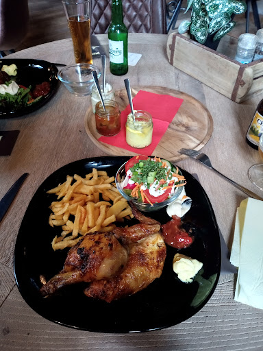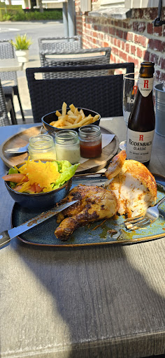 Read moreVandaag gestopt omdat de lunch werd geafficheerd, halve kip aan het spit voor 9.95 euro…..wablief? Dachten wij ,een vriend die mee was vond dit ook …..effe uitproberen? Ja , natuurlijk , parking geen probleem, mooi terrasje vooraan , je kunt er buiten zitten,maar het traffic aan de vijfwege ( Sterrebos) moet je erbij nemen,alhoewel we vonden dat dit goed meeviel ,we hebben na de maaltijd op het terras onze koffie van goede kwaliteit mooi geserveerd met koekjes en een Gentste coeberdon naar binnen gespeeld. En. ….het eten ? Heel lekker ,half kipje, mooi geserveerd op een bordje , met een salade in apart kommetje , er werden ook 3 soorten sausjes bijgeplaatst , ruim voldoende en lekker 😋, een currysausje,mayonaise en een pittig tomatensausje, de frietjes apart in een kommetje en van goede kwaliteit,ruim voldoende en je mag er nog bij vragen. Er lagen ook handige handwassertjes en tandenstokertjes in verpakking op tafel , kortom er werd aan alles gedacht. De opdiening zelf ,heel vriendelijk en attent , de kok ook een vriendelijke man ,mag er zijn 😋….Wij gaan er zeker terug. We hebben de kaart bestudeert, in het weekend betaal je hiervoor 13.5 euro, wat nog niet duur is , ze hebben nog ribbetjes en cote a l’os en nog andere lekkere dingen ,ook voor de kindjes....