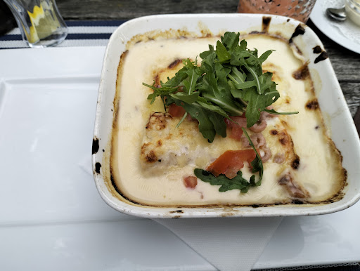 Jammer genoeg kan ik geen review geven over hoe het is om hier iets te eten of te drinken want voor we konden plaats nemen werden we gezegd dat grote honden niet toegelaten zijn. Ik zei daarop dat je met hen minder last hebt dan met kleine honden en dan boden ze ons een plek aan op het terras maar daarvoor waren we natuurlijk niet gekomen. Het was een koude dag en wilden ons even opwarmen.