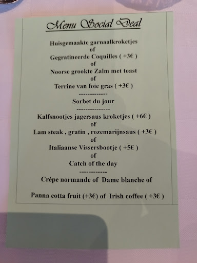 Read moreOnline ziet dit er een verfijnde en propere eetgelegenheid uit...bij het binnenkomen een andere indruk, veel stof, nog vuil op de tafel, waren de eerste die middag om daar te eten, vuile vloer...Eerste indruk was al niet meer zo positief. Een ober met okselvijvers, die echt wel wat deo kon gebruiken. Prijzige kaart en zeker zijn geld niet waard! Voorgerecht garnaalkroketten gevraagd, waren slap, ineen gezakt, op meerdere plaatsen open gesprongen en erg weinig garnalen te bespeuren, vergezeld van 1 klein blaadje sla en 1/4 tomaat (26 euro pp), daarna met drie één van hun suggesties besteld, vierde persoon de scampi's. Op hun bordje staat te lezen: slibtongetjes met slaatje en frietjes. Wij kregen de tongetjes wel, maar met wat warme groenten en puree. Bij navraag om de frietjes, kregen we 1 potje voor 4 personen! Bij de scampi's lag hetzelfde torentje van puree met wat warme groenten. Toen we met drie klaar waren met eten, vroeg men of we nog wat frietjes wilden, we moesten dat gevraagd hebben kregen we als commentaar, terwijl ze niets anders deden dan maar rond lopen in een niet volle zaal. Toen we hen aanspraken dat hun suggestie niet klopte met wat er op ons bord lag, kregen we een kort antwoord: je moet dit niet nadien zeggen, maar vroeger melden, wij waren zo van: we hebben besteld wat er op jouw bord met suggesties stond! En dan zei hij dat de kok maar zijn/haar best heeft gedaan om het gerecht nog beter te maken...Allemaal uitvluchten! Ons gaan ze daar alleszins nooit meer zien! Voor deze prijs was de bediening, de hygiëne, hoe je als klant werd behandeld en het...