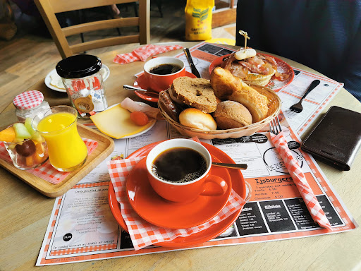 Hier komen ontbijten en we hebben hier van genoten. Uitgebreide keuze aan ontbijt mogelijkheden. Vriendelijke uitbaters. Je ziet dat er veel volk aanwezig is en dat geeft een goeie indruk natuurlijk als je binnen gaat. Het was er even wel koud omdat de deur open moest voor de verluchting tegen corona. Dit was wel begrijpelijk maar niet aangenaam. Ook omdat er buiten werkzaamheden met storend lawaai bezig was. We merkten dat andere klanten ons gelijk gaven toen we vroegen of de deur even dicht mocht maar dit niet kon. Het is ook een van de weinige zaken waar wij dit al opmerkte dat men de deur wagenwijd word opengezet? Misschien kijken voor een alternatief op koudere dagen? We hebben even moeten wachten op de broodjes die moesten terug gebakken en aangevuld worden maar men liet ons dit wel weten. Het ontbijt was wel lekker met verse producten. En het personeel was er ook vriendelijk. Het pakte ons eten in die we niet...