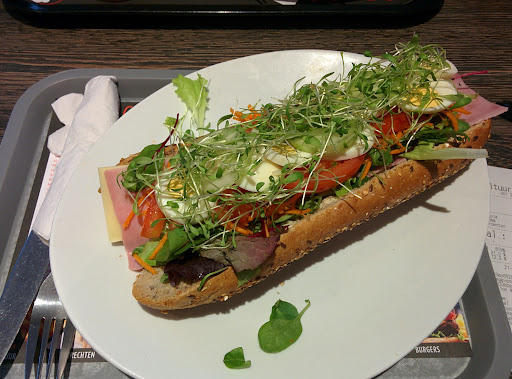 Read moreTijdens de week, op de middag snel iets gaan eten met twee personen. Mooie en propere zaak met veel keuze. Snelle bediening aan tafel na bestelling aan de toonbank (zoals in veel fast food ketens). Ik koos voor "vol au vent" met frietjes, mijn echtgenote een slaatje met frietjes. Het eten werd vriendelijk aan tafel geserveerd = niets op aan te merken. De "Vol au Vent" was volgens mij niet "home made" (staat ook nergens vermeld) maar was toch lekker. Het slaatje mooi vers en rijkelijk. Het was ook geen probleem om een "doggy bag" te krijgen voor het overschot. conclusie: prijs-kwaliteit OK, een aanrader voor wie snel...