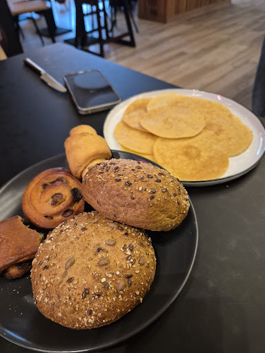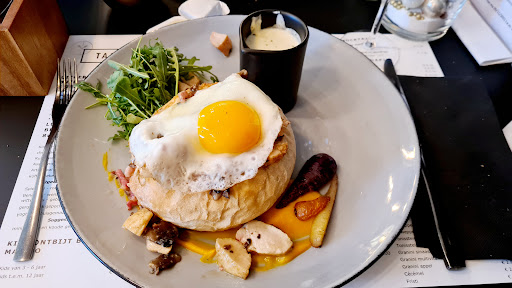 Very delicious and varied breakfast bar. Consisting of cold and warm dishes. Fresh bread from the bakery next door, freshly lrepped eggs in many different forms. Salmon and other hearty snacks. A big variety of hot and cold drinks available. Coffees, tea and hot chocolate. Large assortment of fresh juices as well.