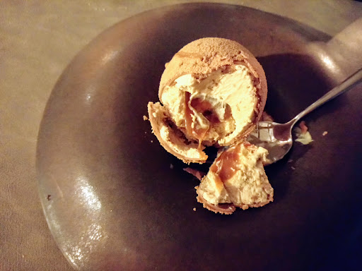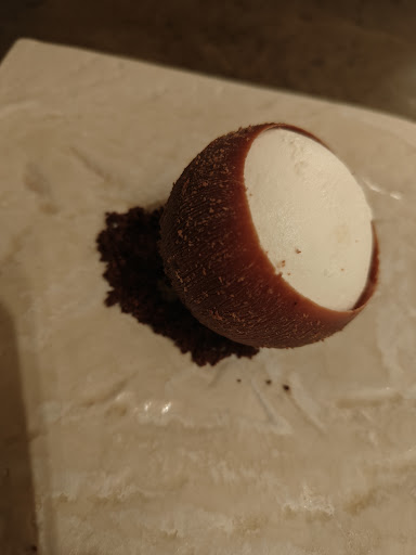 Par contre, grosse déception car le menu présenté sur le site internet n'était pas à jour (donc pas le même qu'en réalité). Lorsque nous avons demandé au serveur, celui-ci nous a répondu "ce n'est pas moi qui m'occupe de cela, je suis un simple serveur", ce que nous pouvons comprendre. Mais le soucis est que mon compagnon ne mange pas de porc et que dans le menu proposé, il y avait 3 services avec du porc dedans (alors que dans celui qui apparaissait sur internet, les 6 services étaient sans porc). Du coup, nous avons été obligé de prendre un menu 4 services alors que depuis plusieurs jours, nous glettions à l'idée de manger le menu enchanteur.