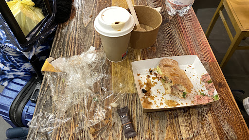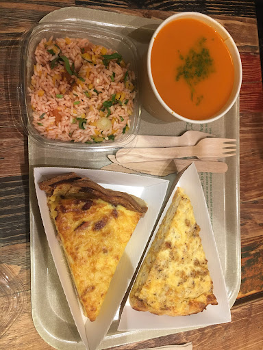 Read moreAn oasis of very tasty, healthy food, with an ethical heart. We wandered round Bruxelles-Midi Railway Station looking for a quick bite, passing row after row of boring carbohydrate laden baguettes, and then we found EXKi. Hooray! Lovely food, including hot soup, a range of salads and interesting baguettes! We had a yummy slice of warm savoury pumpkin tart and floral Earl Grey tea. The staff were friendly and helpful. The seating inside was a bit cramped, but it's worth waiting for a seat or you can sit in the concourse area outside. Loved the attention to detail - a touch of spice in the tart (nutmeg/cinammon) and 2 small dark chocolates with the tea. You can find EXKi in the "Galerie" area, round the corner from the Eurostar terminal. Highly...