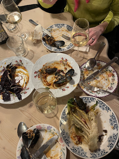 The service: everyone is nice and attentive, but in their rush some people would explain what we are eating, others wouldn't, lacking consistency. Secondly, while I am fine with a relaxed approach to waiting tables, I was left in a surprise that the person clearing our plates put a pile of other dishes on our table, and scraped our food into that in front of us. It's a small detail, but you can't be a chic place and not have staff trained in table-clearing.