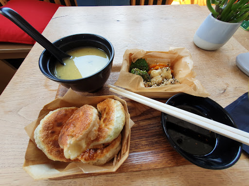 Lovely restaurant with great atmosphere and good service. However once food arrived , it was disappointing. As vegetarians this food lacked a lot of flavour and was not very tasty at all. The texture of the dumplings externally were good however the filling was very very mushy with very very little flavour. The soup that was served with the box set was tasteless and my friend couldn’t even injest it , infact said friend couldn’t eat majority of the dumplings either due to their mushy nature .Although staff were friendly and the atmosphere was good. The food is overpriced for little to no flavour hence why I have to rate this place as 2 stars . Very disappointed as I did...