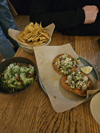 I recommend aguachiles because it was so flavourful and delicious. For me guacamole was a bit tasteless but it could be just my personal preference so I did not take it as a minus. Tacos were great! Simple, seemed pretty authentic and flavourful! We also had cocktails and they were good, not too strong.