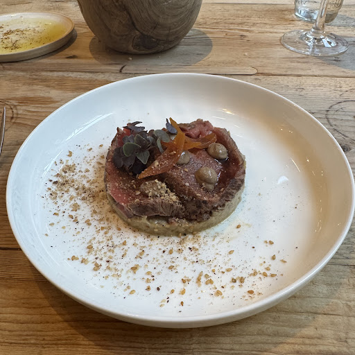 The Service - disappointing - when asked for example what is in the dish, the response was: I don’t know I work at the bar - then why the heck are you serving us? The restaurant was not full - more like 50% capacity. When asked about the wine recommendation - he was not knowledgeable either. Service was slow and not attentive. Staff was when not serving, on their phones?!?