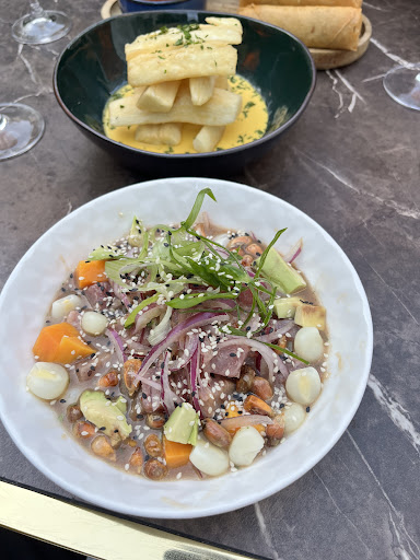 We went to have diner for two to celebrate my wives birthday. First of all, several drinks, beers and starters were unavailable. Can happen, we understand. Secondly and more important, the timing of the kitchen is just chaos. The four dishes we orders were served all separatly. We did not eat one plate at the same time. When we asked about the other meals, they told the waiter had failed to note one of them. My meal was served cold, both potatoes and meat and I asked to reheat it. The potatoes came back cold a second time. Also, the service was lacking the minimal attention you would expect. Some of the plates we had for starters were only removed when we got the bill at the end. Furthermore, the quality of the food doesn’t justify the prices. We had La Bomba and Sopa de Marisco as a starter, priced 16€ and 18€. In our opinion, the vegetable springrolls are simply ready prepared frozen from an asian supermarket and not from their own kitchen. The seafood is the soup also obviously frozen and not fresh. When we made all these remarks at the manager at the end, she told us it was the waiters first day and was making excuses for the cold food. She even said she was aware of the missed orders during the service. Knowing all this, however, nobody made the least proposal to make up for these inconveniences, no discount on the bill, nothing offered from the house. Having paid 94€ in total, this experience was disappointing. I rarely write reviews on Google but I hope this one can help the restaurant to improve. We will not go...