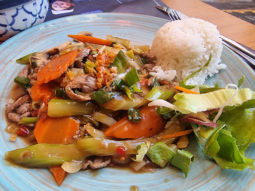 Laid-back, intimate restaurant offering hanging glass bauble decor, subtle lighting & Thai dishes.