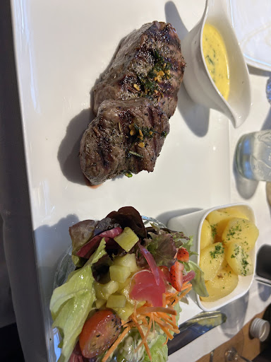 We are Americans who stopped here for lunch on our way from Germany to Brussels. The ambiance is lovely! It is in in a small town near the main highway. The waitstaff was young but helpful and caring (not many spoke English!) but the food was incredible, the cucumber lemonade was perfect for a warm summer day, and the food was luxurious. I ordered the chefs surprise pizza dish, and it was a thick crepe pancake with delicious toppings- ham and cured tuna, caramelized onions and tomatoes with lots of cheese and spices. Definitely enough to share! My company ordered the meatball dish which was in a sweet brown sauce with delicious fries. The table next to us ordered the mussels, which were served in a huge pot and smelled delicious, as well as a steak with fries that looked equally as appetizing. I wish we weren’t only passing through so that we could have visited again. It seemed to be a very hot spot for motorcycles and bikers passing by as...