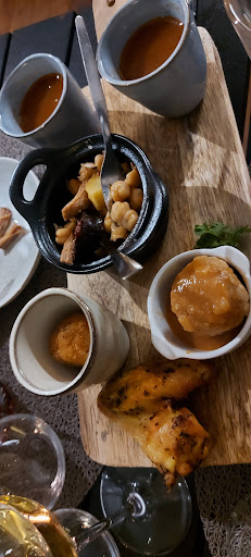Une première...mais aussi une dernière. Nous avions pris une planche Tapassion à 36 euros, sous les conseils de la serveuse affirmant que c'était une belle planche copieuse qui convenait parfaitement pour 3 personnes. A l'arrivée de la planche, nous avons été étonnés par le peu de quantité de celle-ci (1/3 de la planche, c'était des fruits secs...). De plus, cette dernière était censée être accompagnée de pain (arrivé pratiquement à la fin de la planche)...Seulement trois petits morceaux de pain et lorsque nous en redemandons, la serveuse nous apporte des grissini car "il n'y a plus de pain, on en refait"... Nous avons également pris des tapas comme des patatas bravas et quelle déception ! De simples pommes de terre avec une sauce style sauce tomate... Nous avons été déçus, d'autant plus par la note excessive par rapport à ce qu'on a mangé... Je ne recommande absolument...
