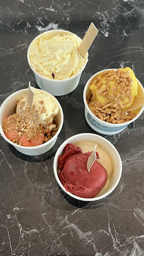 Read moreI was very curious to go because it looks great but sadly I was quite disappointed. To deserve the asking prices, it needs a lot more customer service and attention to detail. What I disliked: a cold (at best lukewarm) capuccino, to have to queue and carry your own tray when seated indoors (!) when there is plenty of (distant) staff, few flavours of ice cream, being served scoops of ice-cream in cardboard pots and worse of all one of those disposable recycled wooden spoons...all good if you are in a takeaway setting where 5 scoops and 3 drinks do not set you...