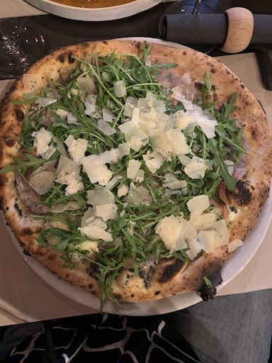 J'ai passé une excellente soirée je n'ai rien a dire ! Le service était impeccable Et rapide ! La serveuse très sympathique et serviable . J'ai rencontré un couple d'une Septantaine d'années ils étaient merveilleux donc pour moi cette proximité des tables rapproche donc l'ambiance était au rdv. Carte réduite en dehors des pizza mais qui donne de la qualité à sa carte ! Je vous conseil en apéro : le spritz limoncello , en entrée : les gambas pour 2 : bien servit et son jus est terrible! En plat : ne rater pas la tagliata de boeuf et sa cuisson maîtrisé par le chef qui est aussi le patron ! Pas de dessert prit nous étions plein et nous sommes gros mangeur ! Nous avons eu le verre de la maison qui est une liqueur aux noisette avec crème...