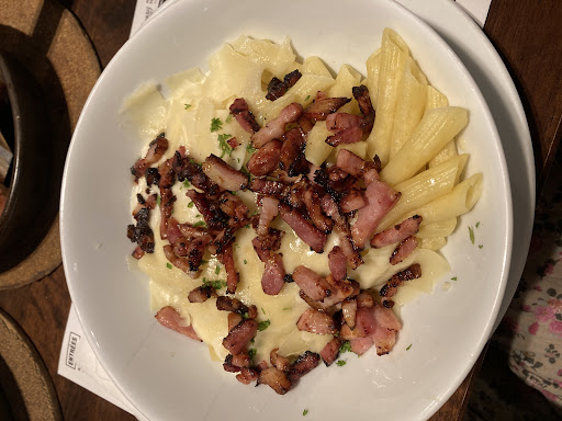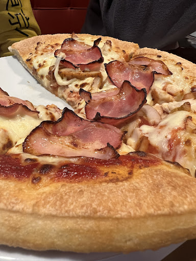 Read morePersonnelles a l'accueil sympathique aucun souci mais 45min d'attente pour une simple box a emporter je n'arrêtait pas de voir sortir des pizzas pour le service en salle et alors que j'étais seul attendre ma commande j'ai demandé où en était ma commande après 25min d'attente et la gentille demoiselle qui est allée poser la question en cuisine s'en est pris pour son matricule sans aucune discrétion que je n'ai pas eu besoin du contrendu a son retour au comptoir je pense même que la personne la plus loin dans le restaurant a aussi entendu et compris les remarques désobligeantes faites en cuisine bref je pense que si ont les sorts de leur routine habituelle ici un jeudi soir formule entrée pizza dessert ils sont perdus en tout cas c'est le ressenti que j'ai eu et même l'aspect de la pizza qui ne fesait pas autant envie que si elle avait été commandée pour manger sur place en gros si vous commandez a emporter soyez patient ne mangez pas avec les yeux et faites abstraction des commentaires et remarques du personnel en cuisine vis a vis de votre commande qui visiblement...
