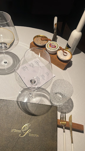Read moreReeds een paar keer dit voortreffelijke restaurant bezocht, en steeds tevreden, voldaan en gelukkig huiswaarts gekeerd. Elk bord is met zorg gedresseerd en alle smaken zijn in perfecte balans. De wijnselectie is met aandacht uitgekozen, waarbij je steeds een woordje uitleg krijgt. Zonder verwaandheid, dit restaurant is werkelijk toegankelijk voor iedereen. De bediening, daar heb ik niet de juiste woorden voor. Heel erg attent, gedienstig... ik, als hobbykok had een vraag over een ingrediënt, en dat werd me met veel enthousiasme uitgelegd. Heerlijk om zo over voedsel te praten! Oude Schuur, vast stekje om culinair te...