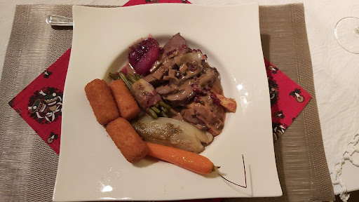 Entrecote saignant aub. Met frieten en bearnaise. Brengen ze de entrecote met daarbjj de woorden... hij is een beetje uit elkaar gevallen maar we hebben de stukken zo goed mogelijk bij elkaar gelegd. Twee dikke stukken (Allez 1 cm) net geen bien cuit en drie kleine dunne stukjes volledig doorbakken. Voor mijn part overschotjes denk ik. Zit ik nog alleen in het restaurant en komt Benny vragen of alles in orde is. Mijn antwoord... de friet valt nog mee....maar laat maar zitten. Hij zag duideljjk aan mijn gezicht dat het mij niet aan stond, maar vertrok toch zonder verder doorte vragen. Het was lang geleden dat ik er geweest was en wou hem opnieuw een kans geven maar die is opnieuw grondig verknoeid. Sorry Benny, maar dit was er echt over. Tussen haakjes ... de bearnaise en de mayonaise...