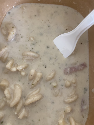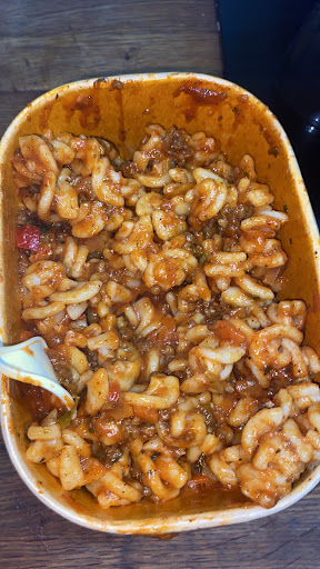 Read moreWe hebben twee uur(!) op ons eten gewacht om dan de verkeerde bestelling te krijgen. Dus, nog eens 40 minuten wachten, om een kleiner bakje te krijgen, zonder het piepkleine overpriced zakje kaas dat origineel besteld was en in de andere pasta was gedaan. Denk je, tijdens het wachten, ik eet het voorgerecht op dat erbij besteld was. Blijkt het potje saus dat daarin geramd was te zijn opengegaan, waardoor alles volgedretst zat... Blijkt dat de saus die ik origineel besteld had op was tegen de tijd dat ik belde. Kies je voor de enige andere keuze die vegetarisch is, blijkt dat dus gewoon dezelfde saus te zijn dan in de verkeerde bestelling zat! Er werd verzekerd dat deze saus niet pikant was, sinds ik dat niet lust. Blijkt ze toch wel pikant te zijn! Ons zien ze...