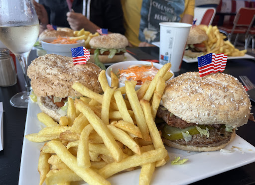 Reeds 2 keer deze zaak bezocht. Lekkere hamburgers en een goede kaart waaruit je kan kiezen (er zijn ook nog spareribs, hotdogs, sate’s, salades en een americain schotel). Leuke inkleding als je van een retro Amerikaanse dinerlook houdt. Muziek wordt hieraan ook aangepast en fijn dat je op tvs de clips erbij kan zien. Leuke zwart-wit tegel vloer, maar deze lijkt wel heel gevoelig aan vuil, wij kwamen rond 20u toe en de vloer zag er niet meer zo proper uit (voetstapafdrukken op de vloer). Verder is de zaak wel proper en wordt je tafel ook afgeveegd en proper gemaakt wanneer deze je wordt toegewezen. Afruimen van de tafel doe je zelf door je bord en vuil naar een afruimhoek te brengen. De hamburgers waren goed van kwaliteit en grote, waren ook lekker warm. De portie frieten die we deze keer kregen waar iets lauwer, 1 potje mayonaise is inderdaad net iets te weinig als je graag je frietjes in de saus dopt, gelukkig kan je extra mayonaise bijvragen zonder probleem en wordt dit met een glimlach overhandigd . Bijhorende salade viel ook in de smaak. Drank is met gratis re-fill, ook de wijn en bier. Dus gewoon met je beker of glas tot aan de kassa gaan en je krijgt weer een vol glas. Het was jammer dat er geen milkshakes beschikbaar waren, deze staan wel op de kaart. Tijdens vorig bezoek ook gemerkt dat deze toen niet besteld konden worden. Het personeel is zeer vriendelijk en behulpzaam! Prijs kwaliteit een...
