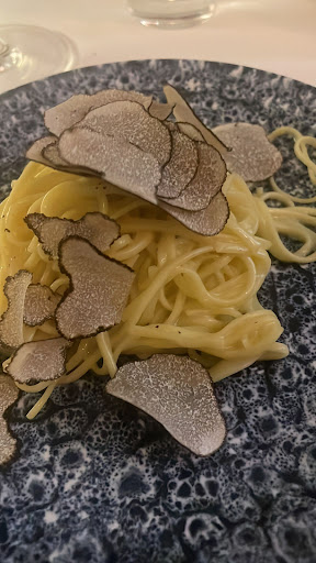 Fantastisch kader, héél mooi gezellig restaurant, vlotte en zéér vriendelijke bediening. De ontvangst was zeer aangenaam, je wordt dadelijk op je gemak gesteld door de gastvrouw, tafel wordt je aangeboden die heel ruim is. De chef (Fabio) komt je persoonlijk begroeten wat je duidelijk kunt appreciëren. Personeel(de 2 dames) waren ook zeer vriendelijk en hadden kennis van de producten! Bij dit Italiaans restaurant zijn de gerechten duidelijk anders dan wat je in een doorsnee restaurant eet. Voorgerecht: -huisgemaakte parmigiano kroket met truffel(TOP) -sashimi tonijn(werelds) -langoustine's(magnifiek)