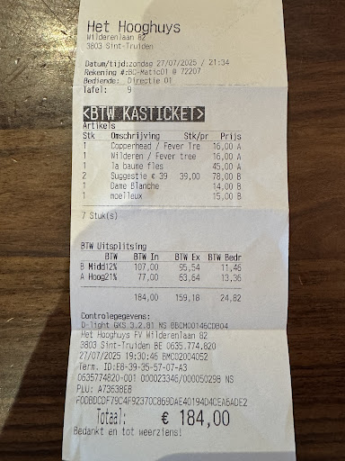 Read moreéén woord: tegenvaller. 2 weken geleden al gereserveerd. Bij aankomst most tafeltje nog gedekt worden( 2 pers) en de tafel stond net aan de ingangsdeur. Koud, en het werd alleen maar erger. Eten besteld, geen drankenkaart. Garnaalkroketten smaakloos, gemarineerde mosseltjes waren redelijk van smaak. Mijn steak smaakloos, diepvriesfrietjes idem. Kabeljauw, saus smaakloos, en de puree echt vies, grijs en weer smaakloos.95 euro, weggesmeten geld en tot nooit meer. Raar m'n zus was er tijdje geleden gaan eten en toen was het lekker. Nog 1 opmerking: het resto zat nadien vol met een lerarenkorps, wel als die de kinderen moeten opvoeden jezus, zo'n lawaai, net een bende...