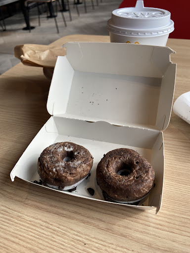 Een drukke avond shift. 3 items uit onze bestelling verkeerd. Natuurlijk merk je dit pas wanneer je je doosje open doet. Dus 3x opnieuw naar de toog moeten lopen omdit om te wisselen. In de keuken heerst er dan een gezonde chaos, maar niemand die de moeite doet om eventjes contact te nemen en vragen als er iets niet juist was... 2x ging het nog enigsinds vlot. Maar toen de wasabi fish burger ook nog eens verkeerd was heb ik bijna 10 min staan wachten... na enkele minuten iemand kunnen aanspreken dat er een fout was. Daarna dus 10 min staan wachten 3x geroepen... wasabi burger aub. Maar niemand die opkeek als ik riep. Uiteindelijk iemand met zijn arm moeten nemen, nog eens duidelijk moeten maken dat er een fout was en dat we buiten zaten. Ik snap als het full house is dat er een foutje kan gebeuren. Maar dit was er echt over. De wasabi fish burger viel nog het beste mee van smaak. De maple syrup bacon, deed me niks en spicy chicken burger (Malaysian dacht ik) was ook maar zeer middelmaats. Nee geen toffe ervaring en best een prijzige avond voor uiteindelijk zelf veel op en af te moeten lopen en koud eten te moeten eten. (Vermits het...