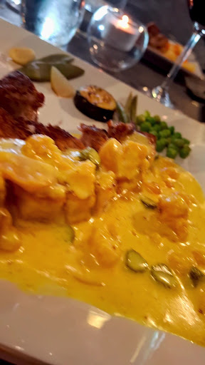 On a dĂ©marrĂ© par une papillote de moules au lĂ©gumes en sauce crĂ©meuse « thaï » juste succulentes. Les bĂątonnets de lĂ©gumes Ă©taient encore croquants et pleins de saveurs. Ensuite une belle escalope de foie gras poĂȘlĂ© et ses pommes lĂ©gĂšrement caramĂ©lisĂ©es. Du bar, dâune cuisson juste parfaite avec la peau bien croustillante et deux belles langoustines fondants en bouche. Une petite asperge et une petite sauce : il ne fallait rien de plus dans lâassiette. En plat un solendide pigeon royal de Racan et un beau ris de veau avec un festival de lĂ©gumes. Pour terminer une magnifique crĂšme flambĂ©e au Grand Marnier.