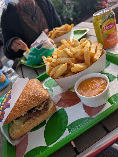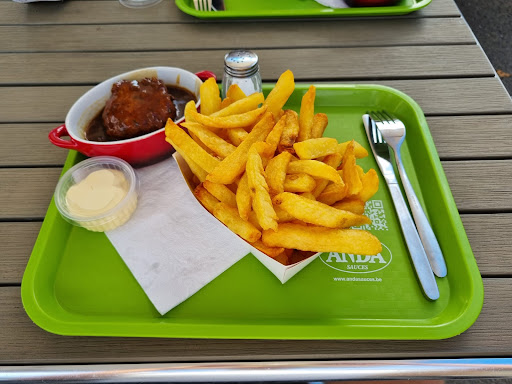 Bonne friterie, dommage pour le patron qui a insinuĂ© que nous devions manger par terre car on ne prend place en terrasse que lorsque on passe commande, donc les gens intelligents et prĂ©voyants qui se prennent une table avant d'ĂȘtre servis se font descendre par le ton condescendant du patron.