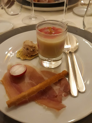 Soupe de melon très bonne mais manque un peu de fraîcheur côté temperature avec un sorbet qui lui ne m'a pas emballé mais ce n'était qu'une question de goût personnel.