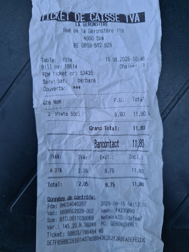 Read moreMy husband and i stayed in la source de la geronstere over the weekend of the Belgium grand prix 2012 from Thursday to Monday morning. The place is in a beautiful setting of the Ardennes forests in a very quiet area. On arrival our room wasn’t quite ready so we had a 20min wait (no big deal at all. When we got into our room it was clean and tidy but it was only this a bedroom with general bedroom furniture wardrobe and dressing table and a sink and mirror in the corner, we believed we were to receive a room with an en-suite. (as we had paid a clean fortune) At first we were disappointed that we would be using a shared bathroom however in using the shower and loo etc it was no big deal really kind of like being at home and having to wait a little while to get to the shower because some of the family were in it you know it was always clean too (there were more toilets downstairs)||||On our first night there we booked in for dinner in the restaurant downstairs, no staff could speak English and the menus were all in French making it very difficult to pick something to eat, the boss who could speak English wasn’t about so my husband who could understand a little basically got us steak and chips each which he loved but I wasn’t fussed.||||In this quiet sleepy setting we were very surprised at the liveliness that took place at night, though it was over a weekend, they were partying, shouting and singing with very loud music just downstairs which we actually found a little funny but it usually always stopped between 11 and 12pm which we were thankful for as we were getting up very early every morning to head down to Francorchamps to get parked etc. to go to the track.||||On the first morning we had our breakfast pretty quickly on the 2nd morning however we were up very early and because himself had been partying so hard the night before he hadn’t sorted out our breakfast and said il be back in 10minutes with your breakfast sort your selves out there with tea/coffee and juice. So he left and we helped ourselves to tea and coffee and juice from behind the bar which I thought was again funny.||||Obviously after our first night dinner disaster we decided we would drive into Spa and find somewhere else to eat the distance from geronstere to Spa I’d say was like 10minutes drive if even, we always got parked up beside the town hall or whatever it was with the fountain out the front and found a restaurant called Café de l'Europe though it had big signs outside it called Maes. This place was just on the corner down to the left of where we parked.||||Another night we decided we would love like a McDonalds and jumped on the satnav to find us one which we found in a place Called Verviers which was like 20minutes drive away pretty handy, this place was also a bit bigger than spa and even had the odd shop so I went and bought some clothes hehe.||||The Hotel/B&B whatever it was, was grand, clean room (no room service or replenished towels though (but I think if you’d asked the boss for anything he would sort you out no problem like he did with me and a hairdryer) all in all in was in a beautiful setting, I’m sure the food would be fantastic if you knew what to ask for unlike ourselves, breakfast was always fresh a little repetitive but that’s a European breaky so no biggy for us. Also lovely people working there not much English as mentioned earlier but very nice genuine people. I think if I was to go to the Belgium grand prix again I would stay here again but only after looking for somewhere maybe a little cheaper as like last time everything is booked up immediately so this was all we could find though it was still lovely.||||The hotel/b&b was also about 5 minute’s drive down the road from when you hit Francorchamps, a little advice regarding the f1 end of things don’t pay for parking when buying your tickets for race to this track there are fields on either side of road nearly all the way through francorchamps which are cheaper than the tickets you pay for online when buying your race tickets. When you first hit the traffic like us you may be tempted to ditch the car on the side of the road there and then, but the traffic does keep moving slowly but in no time if you stick with it you’ll be upon the signs for parking in the fields unlike us on our first day were we had to walk which was quite a distance especially in the driving rain. I don’t think I’m missing anything really important now, this was probably a lot less stressful attending this f1 weekend than I had imagined (as with the tickets disaster running up to it literally 2 days before we left I expected just more stress), everything in francorchamps etc runs so smoothly and the fact that we were only down the road in La Source de la Geronstere probably...