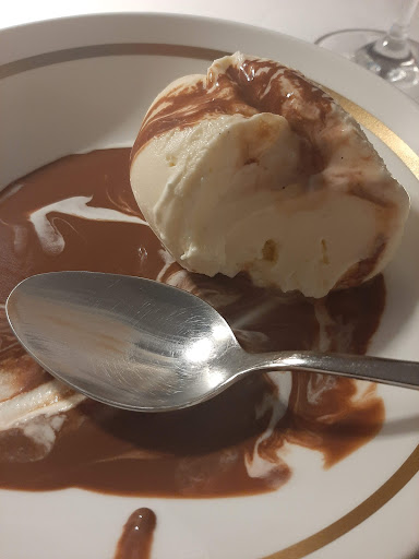 Le dessert est une blague, c'est une dame blanche comme annoncé, par contre faut pas s'attendre à une revisite : c'est littéralement une boule de glace vanille avec un coulis au chocolat (ça fait plaisir à un repas de famille, mais la c'est vraiment trop simple pour un étoilé)