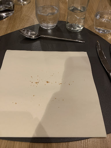 De plus, les entrées ont été servies en même temps que les apéritifs, ce qui n’est pas l’idéal pour profiter du repas à un rythme détendu. Enfin, bien que nous ayons commandé une bouteille de vin blanc, personne n'a pris la peine de nous servir les verres. Après la remarque polie de ma compagne au sujet du cheveu dans son entrée, le service est devenu plus rare et distant, ce qui a un peu terni l’ambiance.