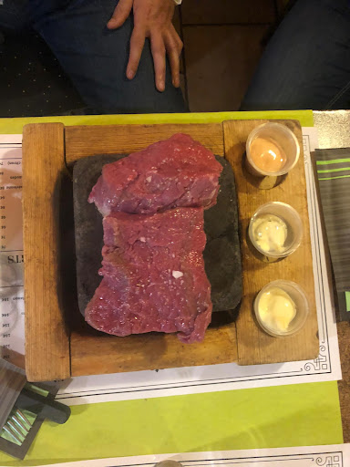 Wat een ervaring 😅,.......om te beginnen vonden we de ingang niet en zijn we via de achterdeur naar binnen gegaan. Het zaakje zag er van de voorkant erg vreemd uit. Heb eerst gekeken ofdat het wel wat was , we hadden zo een honger en wilde niet meer verder zoeken naar een ander restaurant dus namen we de gok. Gelukkig was er 1 iemand die nederlands sprak want de franse taal was ons niet bekend 😅 .....er werd gezegt dat het een speciale dag was en er alleen vlees op een baksteen werd geserveerd uiteraard met frietjes !! We namen plaats .....de zaak was een beetje een bijelkaar geraapt iets, zo zag het eruit naar onze mening, tafelloper over tuintafels en een deel gewone tafels. Na het toilet bezoek dacht ik ,....is er een kans om nog naar buiten te rennen 😅 , maar het eten was al besteld.....de toiletten waren erg vies en alleen op de dames toilet kon je je handen wassen , de wasbak buiten de toiletten deed het niet. Vervolgens kregen we het eten ,......nou het leek of er in totaal een halve koe op onze vier stenen lagen 🤣 ,........een grote bak met frieten!! Maar ik kan je verzekeren het beste stuk biefstuk wat ik in hele lange tijd niet had gegeten ....dus zolang je daar alleen voor gaat ( voor gied eten ) zou ik er zeker een keer stoppen. Na afloop kregen we zomaar een warme koffielikeur met slagroom. Voor de prijs hoef je er ook echt niet langs te rijden maar zeker naar binnen gaan , want de biefstuk met friet en koffieliekeurtje was maar 22 euro per persoon. Dat is echt een koopje voor zo een lekkere grote biefstuk. Heb er echt van...
