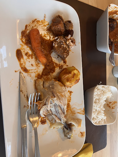 Read moreSpeciaal Afrikaanse gerechten gekozen. Vlees uitgekookt, bananen droog gekookt. En huiswijn gekregen aan de prijs van de duurste. Helaas niet voor herhaling vatbaar. En misschien klein detail, maar als ik als meer valide onwel wordt in het toilet moeten ze deur uitbreken 😵💫 Op een foto van een vorige review was een voorgerecht met 3 driehoekige bladerdeeg ‘hapjes’ wij...