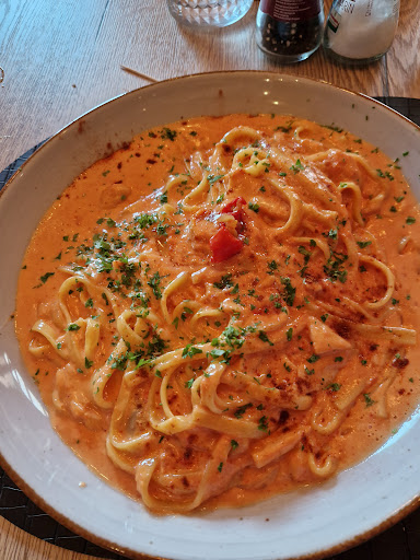 Zaterdagavond met een groep van 19 (waarvan 12 volwassen) in het restaurant gegeten, gereserveerd uiteraard. Het was enorm gezellig, heel goed geregeld. Bediening was vriendelijk, meedenkend en flexibel. Het ziet er misschien uit als een standaard pizzaria, maar daar zitten en eten, het eten is van uitstekende kwaliteit. De reepjes rundvlees (tagiatella de beouf) is echt subliem! Pizza's hoogwaardige kwaliteit, de curry pasta heerlijk. Over de service was ook echt nagedacht, we vroegen om twee kinderstoelen, die werden gebracht en het bestek werd direct aan de andere kant van het bord gelegd, de kinderen kregen als eerste hun eten, dingen die het verschil maken in zo'n groot gezelschap. De kinderen mochten even bij de keuken kijken, erg leuk hoor! Toetjes waren ook erg lekker. Echt...