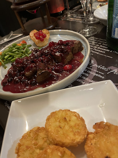 La prise en charge à l'arrivée est correcte. Nous avons été installés à l'arrière où, en fin de soirée, il faisait mourant de chaud. Le poêle à pellet tournait à plein régime et la salle était pleine.