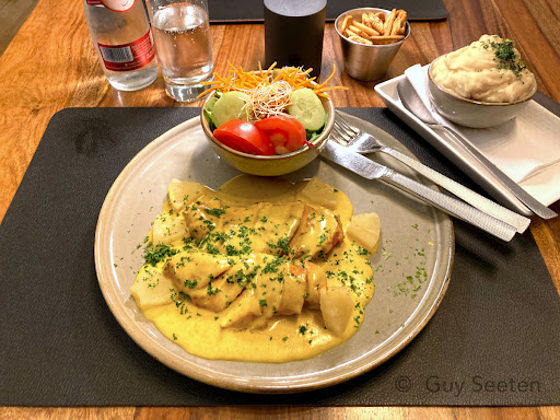 Read moreBeneden peil. Er werd wel enigzinds een flauwe poging gedaan enige service te voorzien, maar hierin werd rijkelijk te kort geschoten. Het triestigste was nog het eten. Van taaie scampi's in een roux met een smaakje bij tot uitgedroogde ribbetjes en kikkerbilletjes met een overheersende roomsmaak (wat trouwens het enige was wat je smaakte). Ik verwacht in dit soort zaken geen sterrenkok,maar dit was zielig. Hoe ze de vraag "was het in orde" over hun lippen krijgen blijft me een raadsel. Ik heb alvast beslist deze zaak niet meer te bezoeken. Trouwens,als zelfs een doekje voor uw handen niet standaard bij je ribbetjes word gegeven,kan van "service" weinig sprake zijn. Voor meer dan 100 euro voor 2 personen vetwacht ik toch wel iets die beter smaakt dan hetgene ik thuis zelf klaarmaak. Toch...