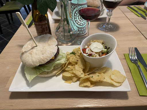 De huisgemaakte burger werd louter met een fris slaatje en krokante chips vergezeld, wat zéér aangenaam was.