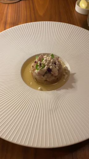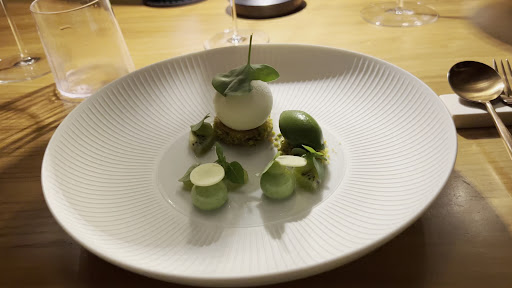 Venons-en à l’essentiel : le repas. Et bien, c’est tout simplement une merveille. Des textures, des associations de saveurs improbables et qui s’accordent très bien au final. Le point qui nous a particulièrement plu : les sauces! C’est incroyable ce que nous avons pu goûter. Le dessert signature est vraiment à goûter également. C’est surprenant. Vous me diriez qu’il a 2 ** que je le croirais bien. Et en fin de repas, vous n’aurez plus faim. Nous avons choisi deux bouteilles de vin à la carte car les prix de départ sont assez corrects pour déjà une très bonne qualité. Le sommelier s’y connaît très bien et est de très bon conseil.